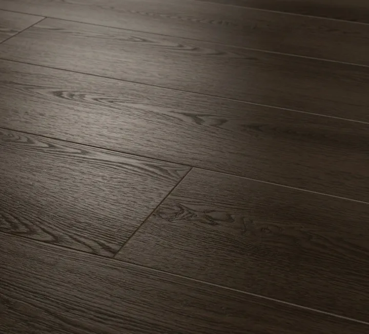 Dunkler Vinylboden in hochwertiger Holzoptik mit sichtbarer Struktur und gleichmäßiger Oberfläche.